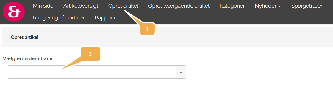 - Vælg hvilken vidensbase du ønsker at oprette artiklen i