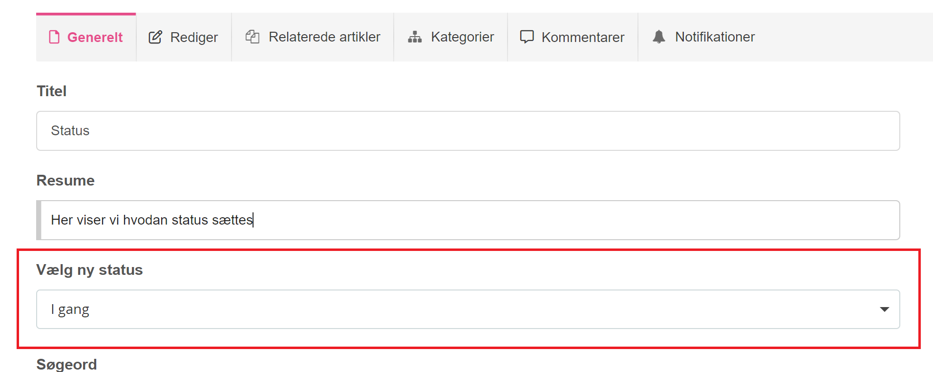 - Vælg status 'Publiceret', hvis du vil publicere artiklen med det samme