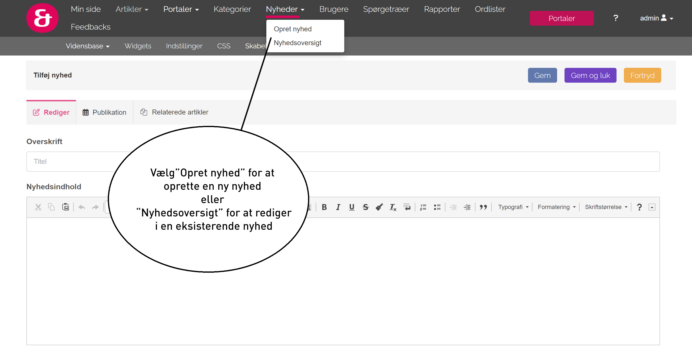 2. Under fanen Rediger skal du skrive en titel på nyheden og selve nyhedens indhold.