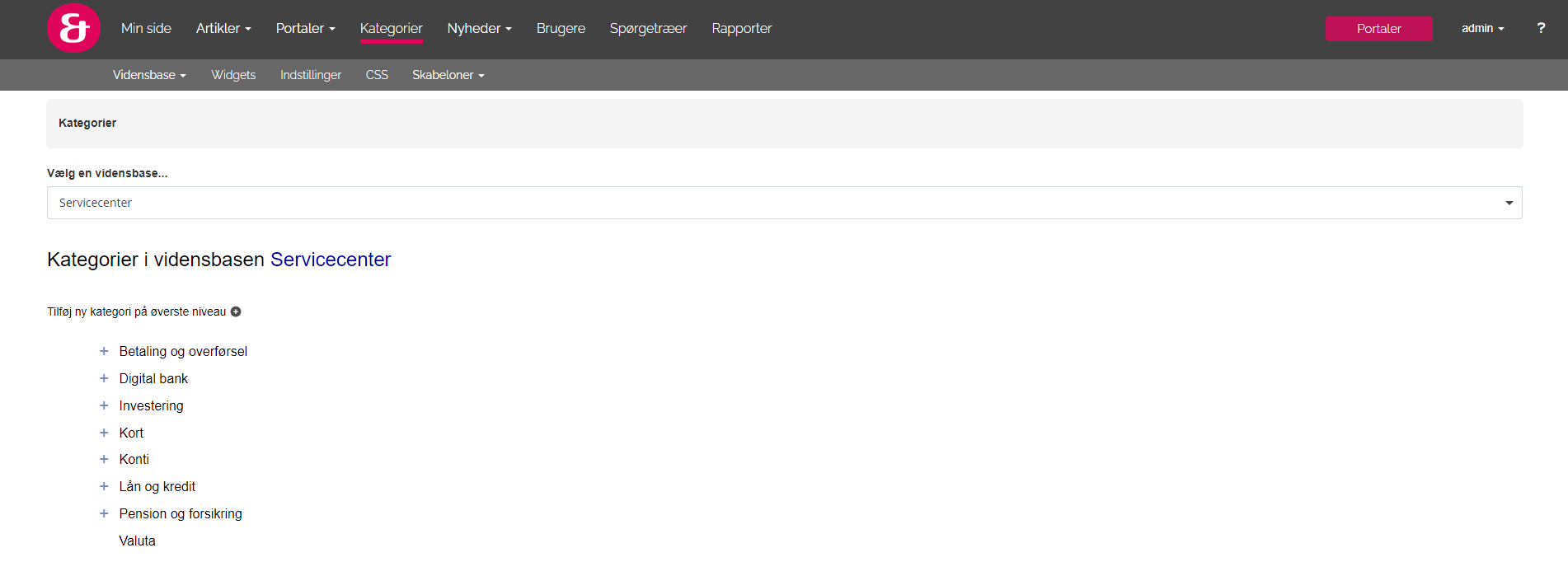 - Har du adgang til flere vidensbaser, skal du først vælge den relevante vidensbase under fanen 'Vælg en vidensbase'